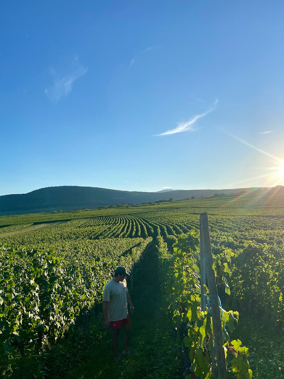 Au cœur du Bollenberg, Sonnenglanz déploie son nom comme une évidence. Ici la lumière règne, souveraine, mais jamais sans frein : la pierre lui impose sa mesure. Le calcaire alors se nourrit des argiles fines ; de cette alliance naît une ossature minérale. Une pulpe discrète s’y greffe, une chair subtile qui vient habiller le squelette. La maturité avance d’un pas sûr, sans hâte, portée par des vents apaisés qui posent sur la vigne un voile de douceur.