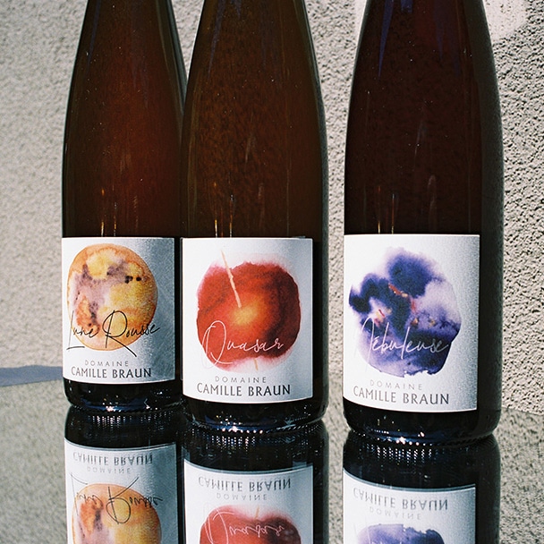 Nébuleuse explore le pinot gris sous un autre angle : celui de la macération, où la couleur se trouble un peu et les contours gagnent en profondeur. Au nez, les fruits jaunes mûrs – mirabelle, reine-claude – côtoient la peau de pomme, le miel léger, le thé blanc et une fine note fumée, comme un voile. En bouche, la texture est au centre du propos : les tanins de peau dessinent un grain délicat, la matière est pleine mais tenue, avec une sensation tactile presque caressante. La finale est sèche, prolongée par une minéralité discrète et une amertume fine qui étire le vin. Un pinot gris de macération qui reste lisible, lumineux, pensé pour la table : assez structuré pour accompagner des plats de caractère, assez nuancé pour rester dans la conversation