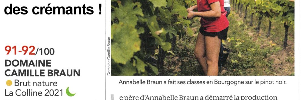 “Le père d’Annabelle Braun a démarré la production des crémants au domaine. Et c’est encore auprès de lui qu’elle apprend les rouages des bulles après une formation en Bourgogne centrée sur le pinot noir. Mais elle ne se contente pas de de regarder et a des envies : allonger l’élevage des vins de base en privilégiant les foudres pour gagner en complexité et en chair. Elle voudrait aussi augmenter le temps sur lattes, au-delà de soixante mois. Elle raconte ça le sourire aux lèvres, en se remémorant des souvenirs de dégustations de grandes bulles. Un bel avenir est promis aux crémants quand on voit quelqu’un qui veut y mettre tant d’amour. – Romain Becker |