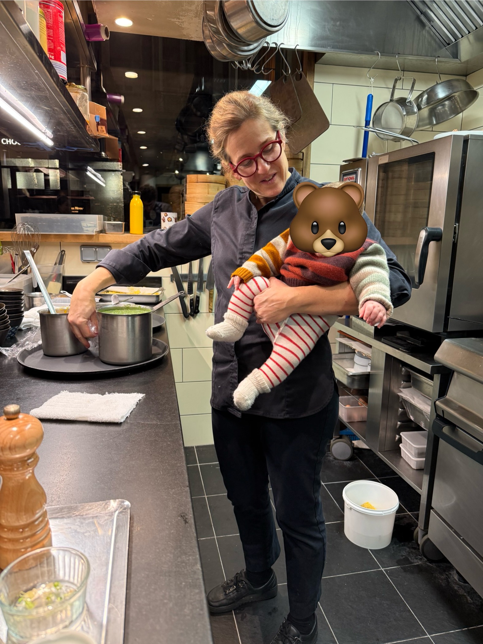 Au milieu de ce ballet gastronomique, un geste de grande délicatesse a rendu l’instant magique. La cheffe Grattard a proposé d’emmener Hippolyte, âgé de deux mois seulement, en cuisine, afin de laisser ses parents profiter pleinement de la dégustation. Le nouveau-né est resté là, paisible comme les eaux du Léthé, ce fleuve dont le calme imperturbable semble suspendre le cours du monde. Il a ainsi fait ses premiers pas dans une cuisine étoilée, observant la brigade s’affairer avec une sérénité qui a fait de lui l’attraction douce de la soirée, captivant autant les convives que les cuisiniers.